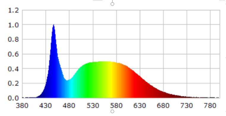 Spectral power distribution in the range 250 nm to 800 nm, at full-load |