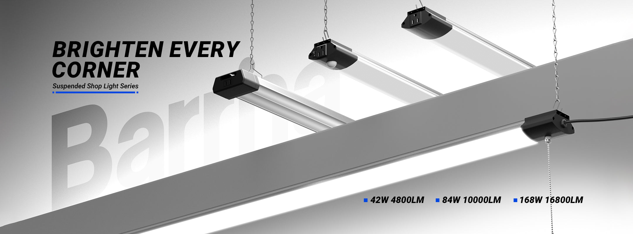 Barrina 168W LED Shop Lights 8FT 5000K 16800LM | Hanging, Linkable & Power Plug Cords | BS168